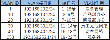 本例中三层网管交换机的端口1连接路由器,端口2连接AC,具体VLAN划分和端口规划情况如下所示: