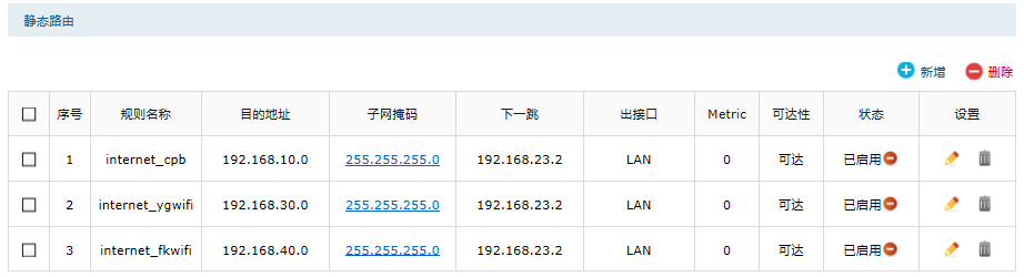由于产品部、员工无线网络、访客网络需要连接互联网,所以需要设置相应路由使数据能转发出去。