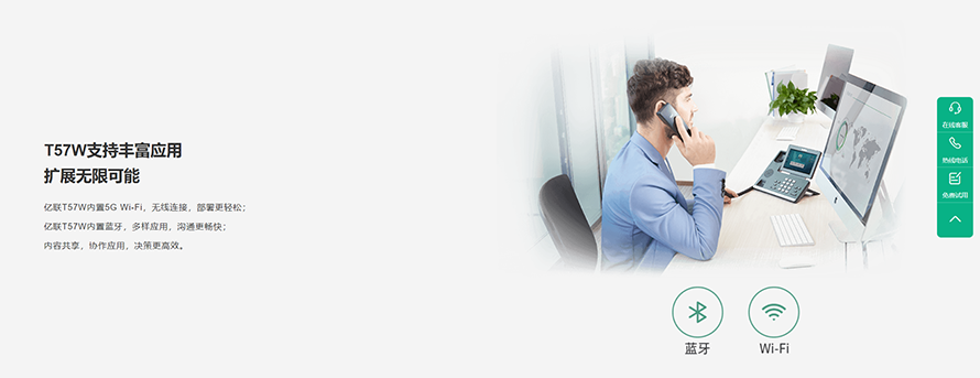 亿联T5系列高端商务话机T53、T53W、T54W和T57W主要面向当今高度活跃的语音通信用户,旨在为其提供先进的话机功能、新一代高清通信体验、极大的便捷灵活性。T5系列话机引领时代潮流,为大中小型各类企业提供优质的解决方案,帮助企业充分发挥远程通信和协作的优势,提高工作效率。