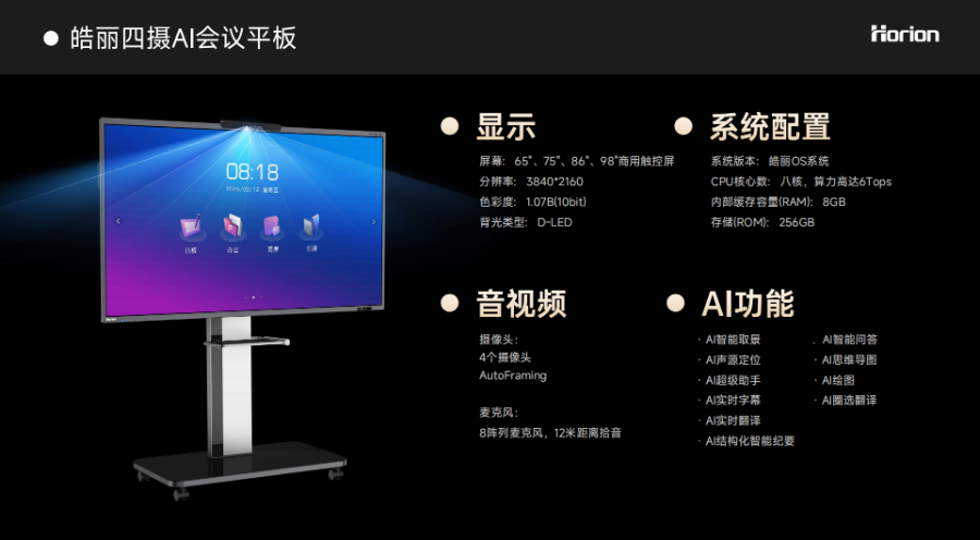 从单一显示设备到智能协作中枢,皓丽用十年专注会议场景的深耕,打造出这款定义行业新标准的旗舰产品。当AI全视之眼遇见智能协作大脑,会议不再是时间的消耗,而是价值的创造。
